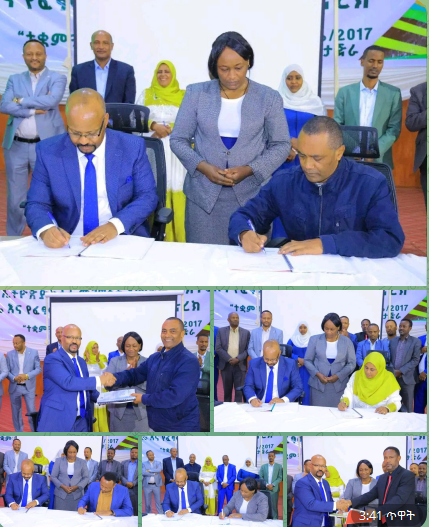 ርዕሰ መስተዳድር እንዳሻው ጣሰው ዶ/ር ከቢሮ ኅላፊ አቶ ዳዊት ሀይሉ ጋር የግብ ስምምነት ተፈራረሙ ።